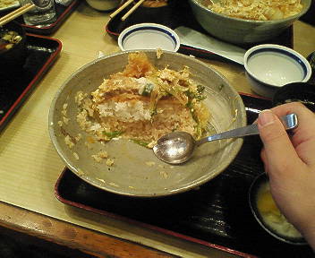 俺の席になんか残ったカツ丼が置いてあるんですっ