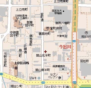 地下鉄烏丸線の、今出川駅の近くです(+のしるしがある辺り)