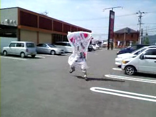 さらにかーくんはプリムラの抱き枕カバーを持ち走り出した