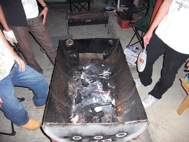 お酒などを買ってくる組と、炭に火をつける組に分かれました