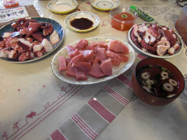 どうせだったので、自分も家のお土産にと、中トロや蛸を買って家に送りました