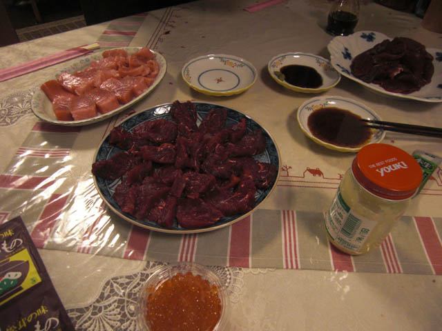 トロ、鹿の肉、鯨の肉、イクラ、松茸のお吸い物でした