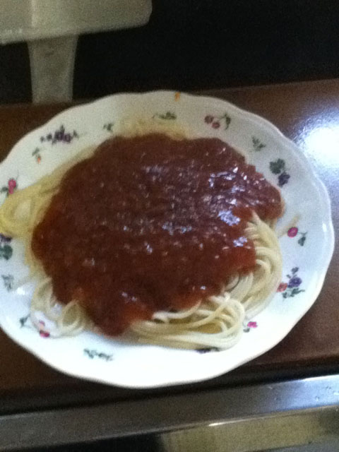 あとは、ジョロキア入りミートソースをかけて出来上がりです