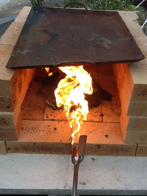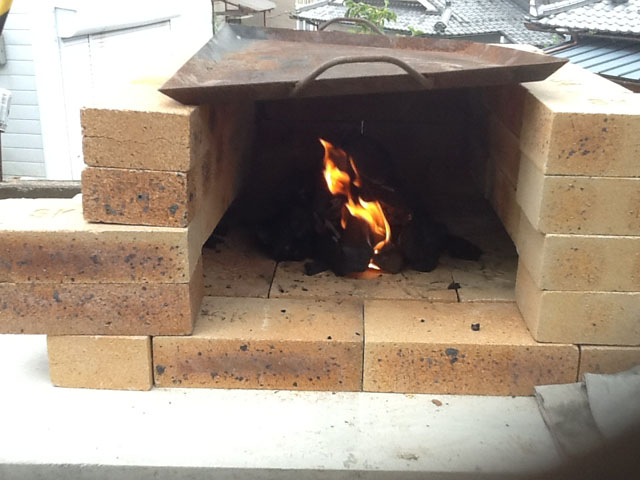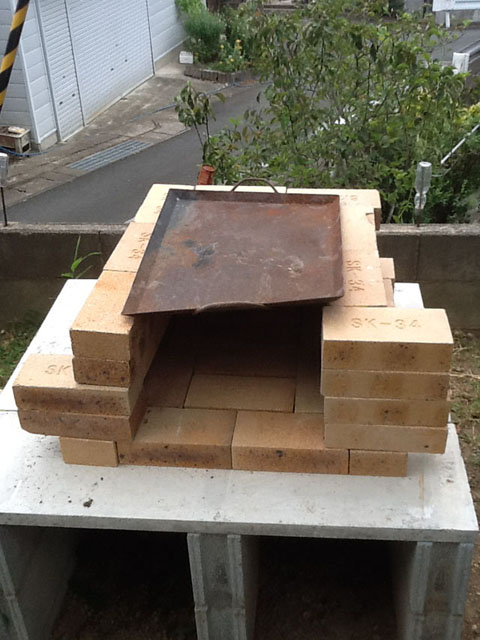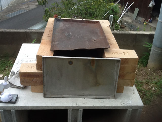 上は使い古しの鉄板を置いて蓋をします