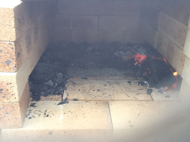ある程度燃えたら、隅の方に炭を移動させます。