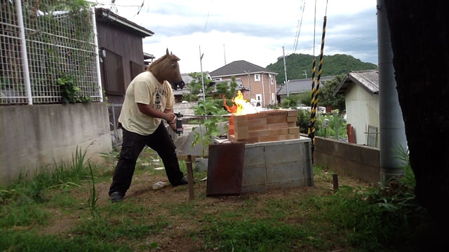 ガスバーナーで点火します