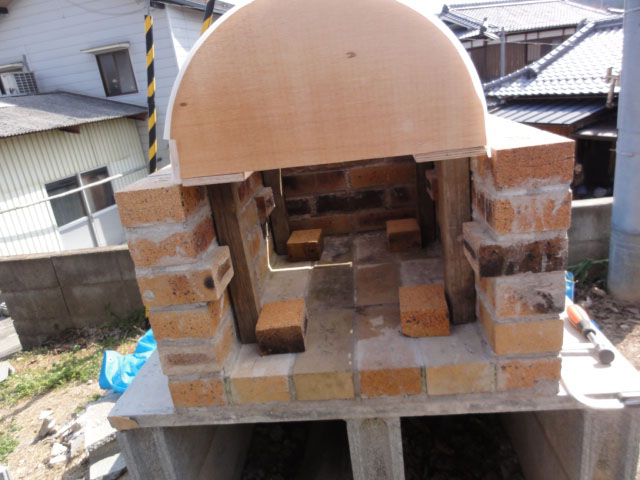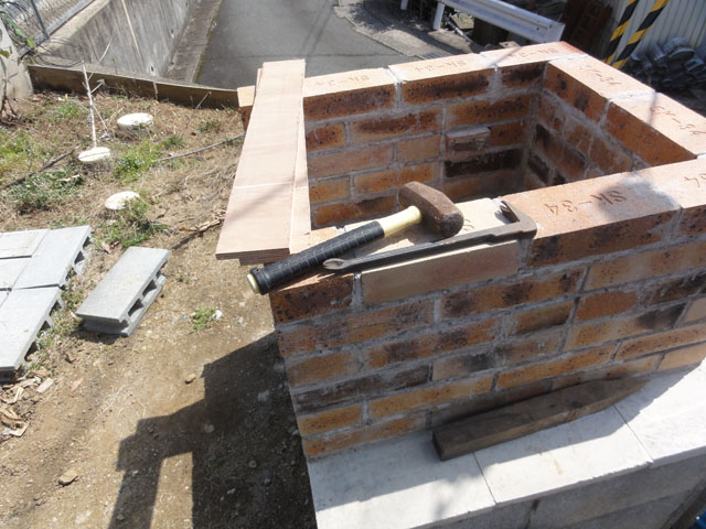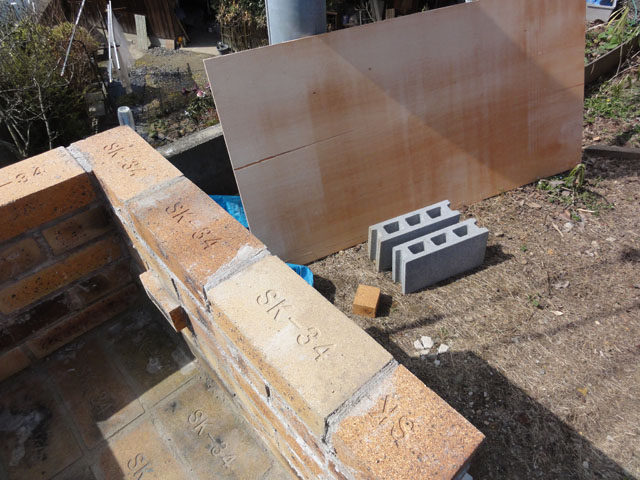 作業時はこんな感じに配置して、形に合わせてレンガを積んで行きます
