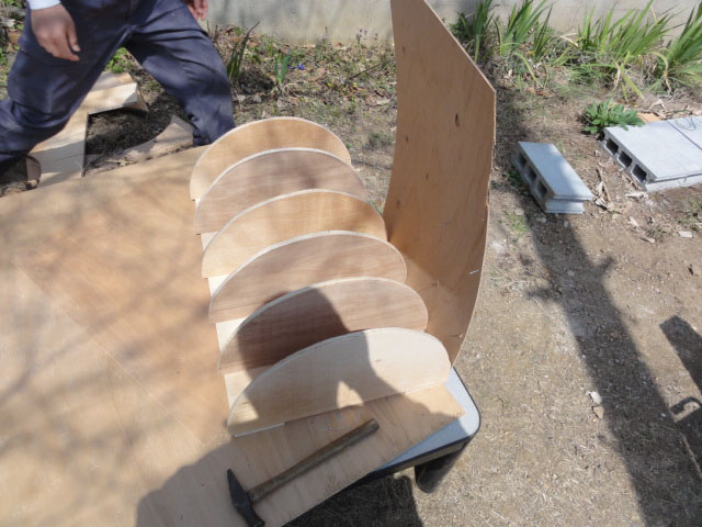 ホームセンターで買ってきた下地合版を使用して型を作っていきます